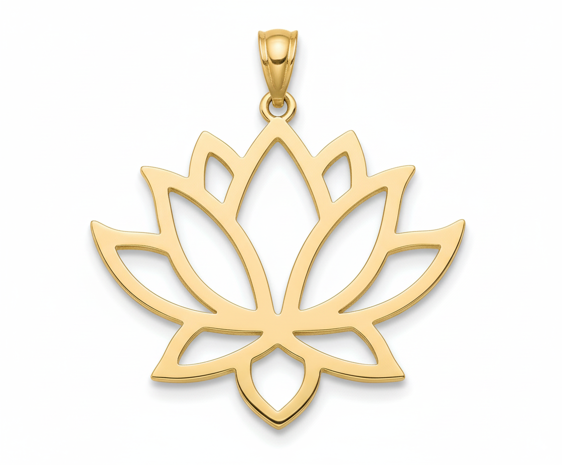 The Lotus Charm symbolizes renewal and spiritual growth, inspired by the flower that rises gracefully from still waters. Handcrafted in 18K solid gold, its sculpted petals shine with harmony and balance, making it a timeless emblem of resilience and elegance. Worn alone or layered, the Lotus adds a refined, symbolic touch to any collection.